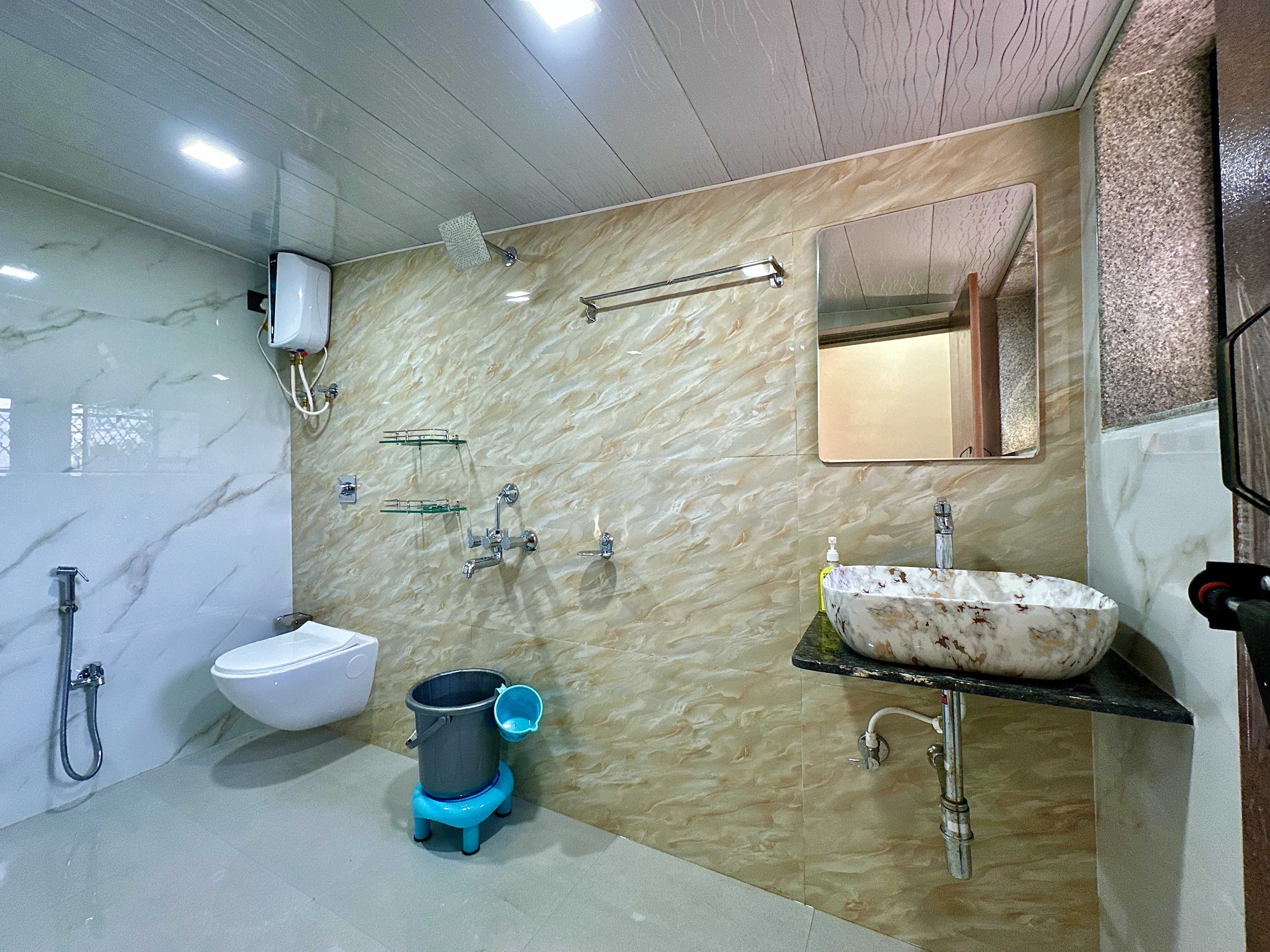 Rain shower, jacuzzi, imported tiles
